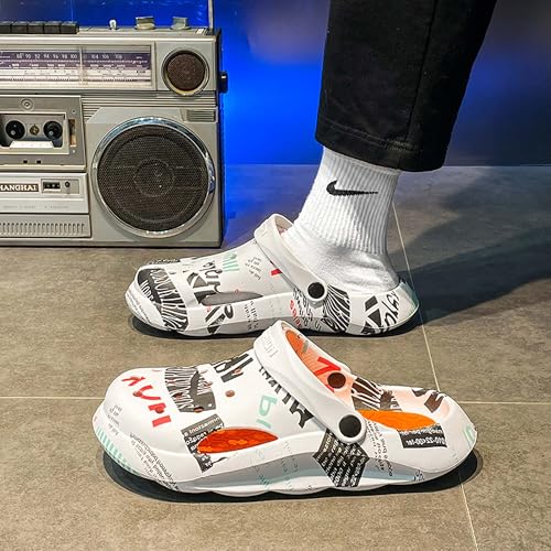 • ​​Featuring eye-catching colorful graphic prints with bold typography and artistic patterns, these clog sandals combine urban fashion with casual comfort. The perforated upper ensures maximum airflow for all-day freshness during summer activities.
