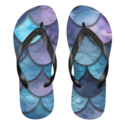 Blue Purple Mermaid Scale Beach Summer Casual Flip Flop Sandals Non-Slip Quick Dry for Women Men 214B3368 3