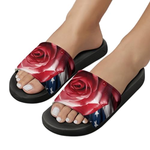 Rose U.S. Flower House Sandals Non-Slip Bathroom Slippers Beach Summer Shoes for Men Women 7
