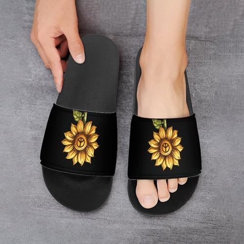 Sunflower Peace Sign Floral Unisex Shower Shoes House Slippers Non-Slip Indoor Bathroom Shoes for Pool Beach 46 (287mm) 5
