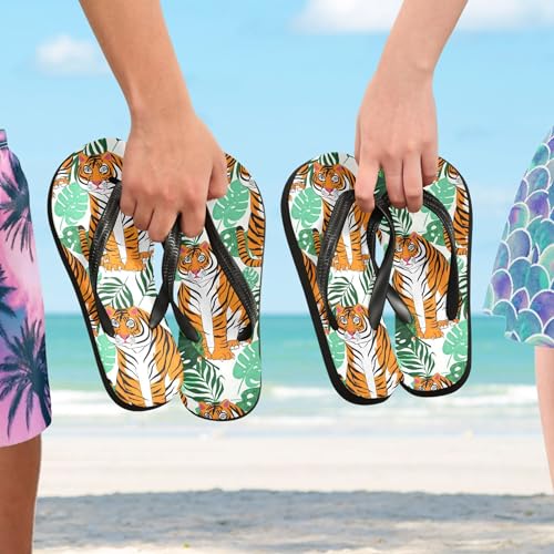 Burbuja Tigers Tropical Leaves Flip Flops for Women Men, Soft Thong Sandals Rubber Slippers for Pool Beach Essentials 7