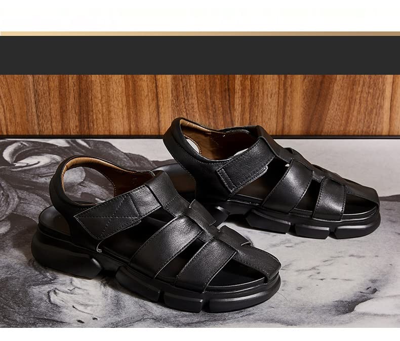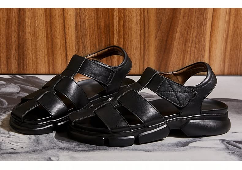 Men's Leather Sandals Hollow Roman Sandals Men's Outer Shoes Black Beach Shoes 5