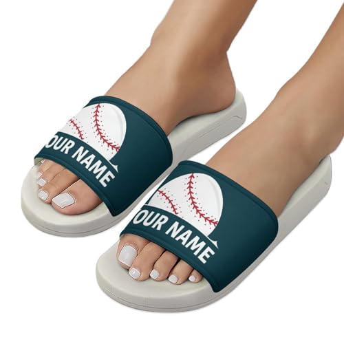 Custom Sports Slides Personalized Slippers - Baseball Sandals Quick Drying Softball Slippers Indoor Outdoor,Gifts for Men Youth Boy (White,Style 47) 7