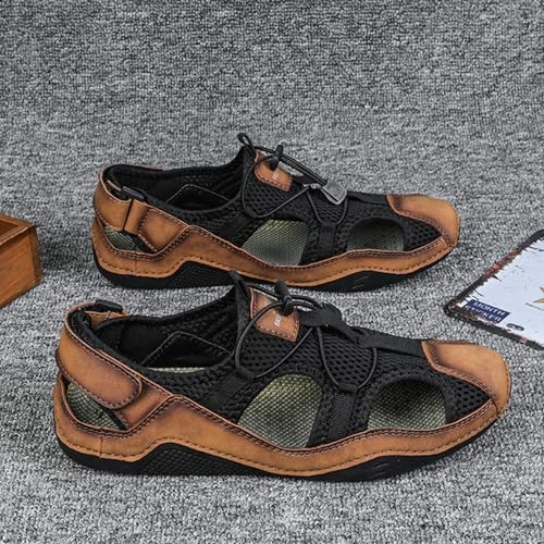 Men's Fashion Breathable Hollow Mesh Cloth Fisherman Sandal Closed Toe Summer Outdoor Water Proof and Slip Beach Loafters for Comfortable Travel Casual Shoes 6
