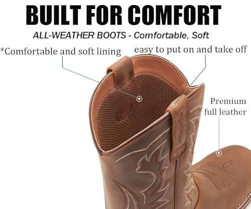 • [EASY TO WEAR] Sureway square toe cowboy boots are designed with two side pull tabs for easy on and off. Even off the job, the square toe western boots have become an iconic footwear choice. Wear them in any weather to keep your feet comfortable all day long.