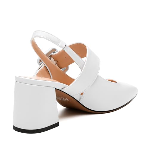 Women's Slingback Pumps, Pointed Toe Mid Heels, Adjustable Buckle Fashion Solid Color Chunky Heel Shoes for Women 5