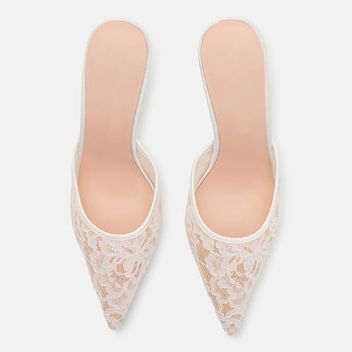 Mesh Kitten Heels Mules for Women Closed Pointed Toe Slip on Backless Stiletto Slingback Low Heels Dress Pumps Shoes 6