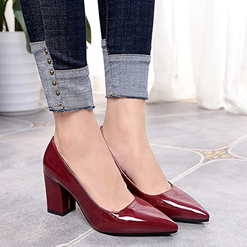 JiangWei Shu Women's High Heeled Pointed Toe Chunky Heel Pumps Shoes 5