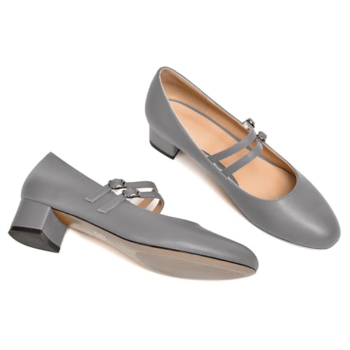 FEMSTEP Womens Office Round Toe Adjustable Strap Fashion Buckle Matte Chunky Low Heel Pumps Shoes 1.5 Inch 5