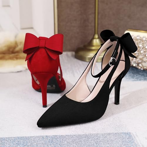 Joseywade Bow Heels Stiletto High Heels Bowtie Bowknot Heels D'Orsay Cutout Pumps Pointed Toe Women Ankle Strap Dress Shoes 3.5 Inch 5
