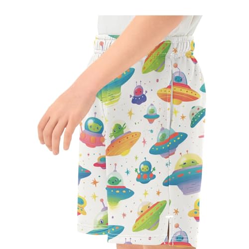 Boys Athletic Shorts with Pockets Cute Green Alien Running Basketball Shorts for Youth Elastic Waist Size 7-8 4