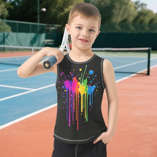 Boys Tank Top Shirts Rainbow Colorful Splashes Sleeveless T-Shirts Crew Neck for Kids Clothing Children 4