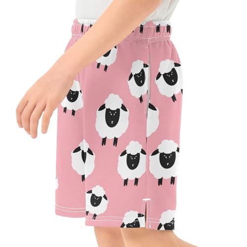 J JOYSAY Cartoon Sheep Flock Rose Boys Athletic Shorts Kids Youth Casual Shotrs with Pockets Elastic Waistband 5