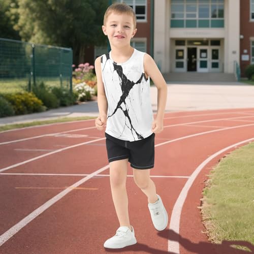 Boys Tank Top Shirts Black White Marble Sleeveless T-Shirts Crew Neck for Kids Clothing Children 5