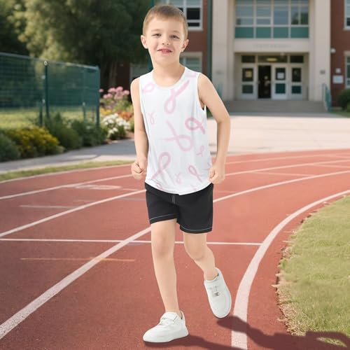JUNZAN Pink Breast Awareness Ribbons Boys' Tank Top Shirt Sleeveless Summer Vest Tee Kids Boy T Shirts for Beach Swim 3T 5