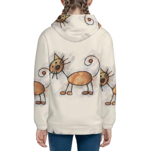More information about Brown Cat Cartoon Kids Pullover Hoodies Boys Zip Up Sweatshirts Girls Athletic Clothes with Pocket