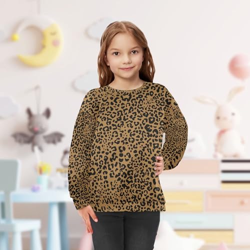 JUNZAN Leopard Print Brown Little Boys Sweatshirts Hoodies Crewneck Hoodies for Girls Athletic 4T 5