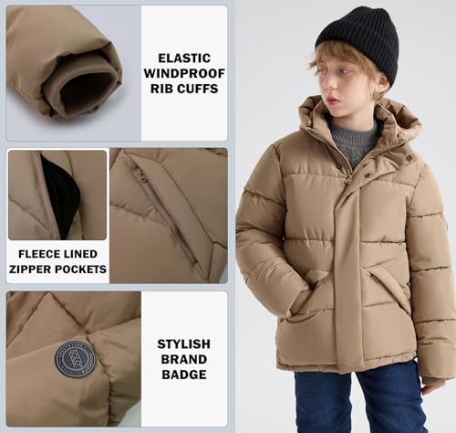 • A Warm Hug: Locks in heat with three coldproof layers, including a super soft fleece lining, high-elastic super puffy faux-down filling alternative padding, and stretch windproof and waterproof fabric. Keeps boys warm and cozy while playing outside.