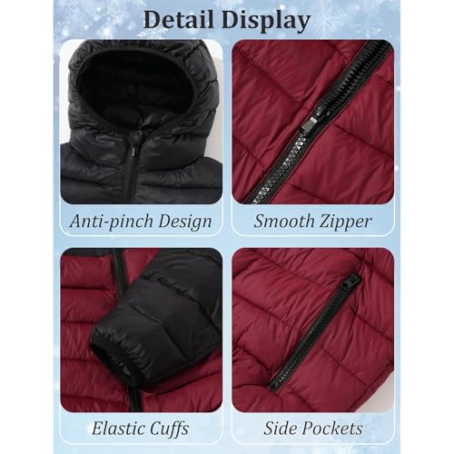 More information about Teen Boys Hooded Puffer Coats Winter Zip Up Warm Quilted Jacket Puffy Cotton Lightweight Color Mixing Down Outerwear