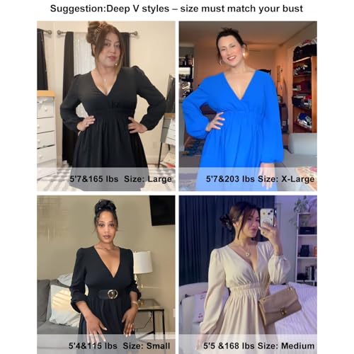 • Features - Mini dress above knee, Sexy deep v dress, Lantern long sleeve dress with soft elastic cuff, A-line casual dresses, Semi formal dresses for women, flowy dress, Elasticated shirring, Lining in bust, Delicate hemline