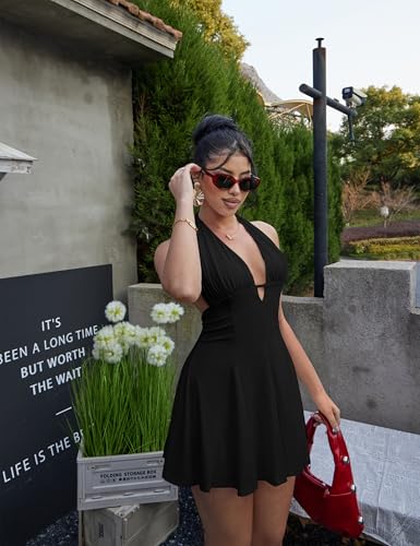 • Feature:Halter ,Backless ,Sleeveless,Tie up Back,Deep V,A-line.The lace-up design at the neck and waist can help you adjust your clothes better and prevent them from slipping off easily, making you feel more comfortable wearing them.Fashion design with sexy look, make you stand out in the night party or club.The date night dress definitely worth having,