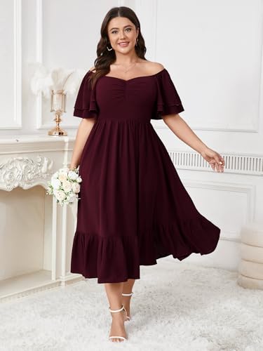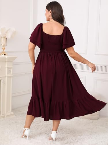 • Romantic & feminine design: This stunning plus size dresses features double-layer ruffle short sleeves, adding a graceful touch to your look. The sweetheart neckline enhances femininity, making it effortlessly romantic and flattering, the stretchable smocked back ensures flexibility, ruffled dress with side slit creates a dreamy and flowy effect when you walk, offering a timeless, graceful silhouette