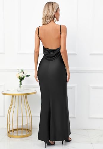 • Features: Women surreal evening gown, sexy backless with lace decoration , drape cowl neck, spaghetti straps, floor length, let you more charming and sexier.