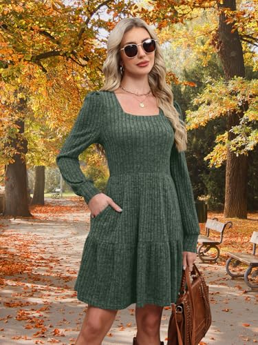 MixShe Women's Fall Dresses 2025 Square Neck Long Sleeve Winter Dress 2