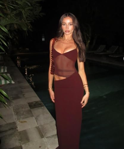More information about Women's Sexy V Neck Spaghetti Strap Bodycon Maxi Dress Backless Mesh Cut Out Cocktail Long Formal Dresses