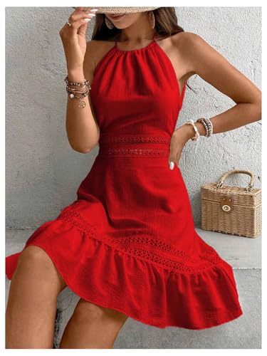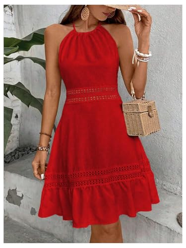 HOT ! Floerns Women's Contrast Lace Sleeveless Halter Dress Backless Vacation A Line Dress