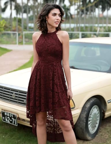 HOT ! Dressystar Women Halter Lace Wedding Guest Dress Hi-Lo Cocktail Party Bridesmaid Formal Dresses