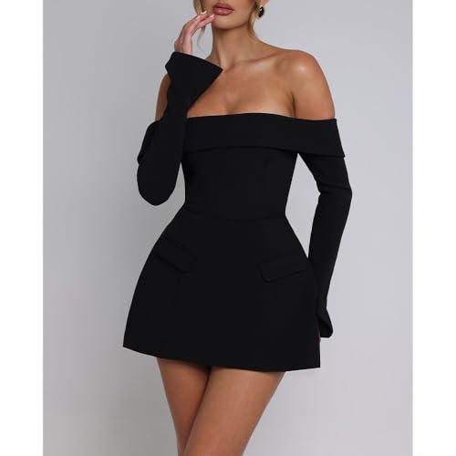 Women Long Sleeve Off Shoulder Dress Sexy A Line Mini Dress Party Club Short Formal Dresses 5