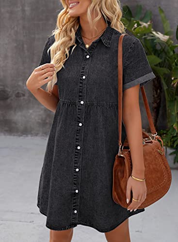 HOT ! luvamia Women's Casual Short Sleeve Button Down Tiered Denim Babydoll Jean Dress
