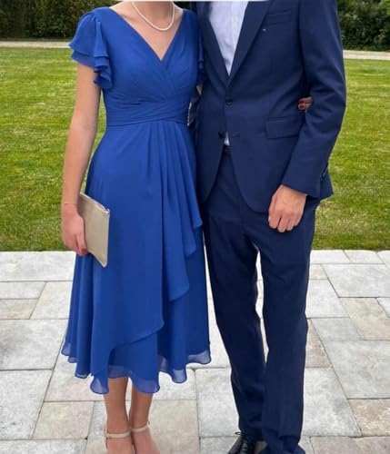 More information about Women's Short Chiffon Bridesmaid Dress with Ruffles Flutter Sleeve V-Neck Cocktail Formal Gowns 2025 with Pockets