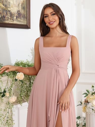 • Features:Long Chiffon Bridesmaid Dresses for Women, Long Pleated Chiffon Bridesmaid Dresses with Slit, Chiffon Square Neck Formal Dresses for Women Wedding Guest, Long Square Neck Chiffon Evening Cocktail Party Dress with Slit,A Line,Floor Length,Pleated Ruched,Square Neck,Corset Back,Side Slit,Fully Lined,Built-in Bra in the Bodice.