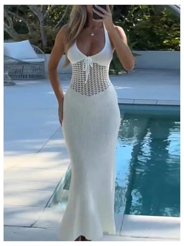 • Feature: Hollow Out, Tie Knot, Open Back, Sleeveless, Plunge Neck, Bodycon, Sheer, Solid, Maxi Length, Halter Dresses for Women