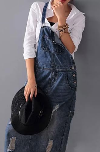 • Occasions for Suspender Dress: Streetwear retro long denim overall dress pinafore dress for women, daily wear ripped distressed long denim dress with pockets, going out frayed jean dress suspender dress sleevelee straps mid calf denim dress, vacation casual denim jumper dress denim maxi dress, night club loose denim bib dress jean overalls