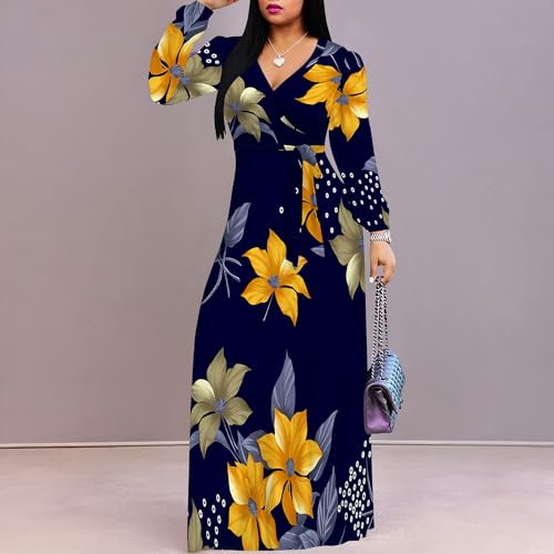 HOT ! PinkPatty Women's Long Sleeve Maxi Dress Plus Size Casual V Neck Wrap Dress with Pockets&Belt
