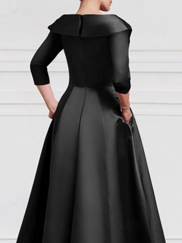 More information about A Line Evening Dress Formal Wedding Guest Dress Satin V Neck Long Sleeve Floor Length with Beading Appliques 2024