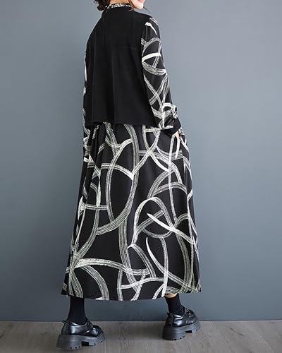 • Features: This women's dress features long sleeves and a high neck design, providing a stylish and cozy look for cooler days. The dress is accented with random strings that add a unique touch, while the patchwork of black and white creates a striking visual contrast. With practical pockets incorporated into the design, this dress combines functionality with fashion. The loose fit ensures maximum comfort, making it perfect for both casual outings and relaxed gatherings throughout the day