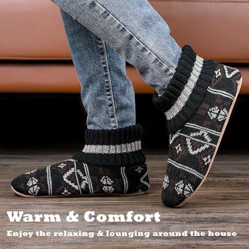• Warm and Fuzzy with Thick Sherpa Lining: These men's fuzzy slipper socks feature a plush sherpa interior and wool-like knit exterior, providing optimal warmth in colder months. The thermal insulation locks in heat, making them ideal for winter mornings, chilly nights, and lounging indoors during the colder seasons