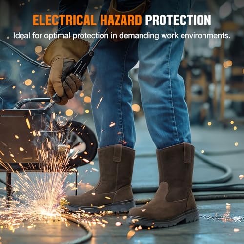HOT ! NINGO Steel Toe Work Boots for Men, Waterproof Wellington Mens Boots with Full Grain Leather, Slip Resistant and Puncture Proof, Pull-On Work Shoes for Construction, Industrial and Farming