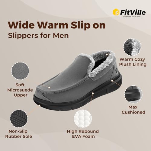 FitVille Extra Wide Men Slippers Slip-on House Slipper Non Slip Orthopedic Winter Shoes for Flat Feet Indoor & Outdoor 6