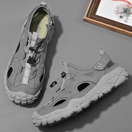 Mens Hiking Closed Toe Sandals Beach Water Shoes Men Waterproof Fisherman Leather Sport Saltwater Sandals 7