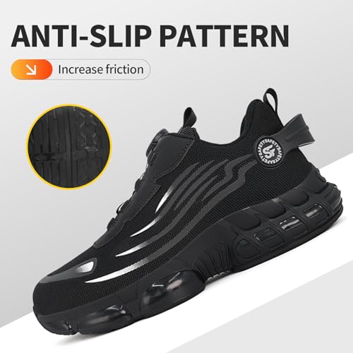 • UNIQUE BUTTON DESIGN: Our work shoes feature a unique button design that allows you to adjust the tightness of the shoe by simply turning the button clockwise. When you want to take off your shoes, turn the button counterclockwise to loosen the laces. Never worry about loose laces again.