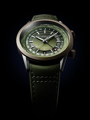 More information about RAYMOND WEIL Freelancer GMT Worldtimer Men's Watch, 24 Cities and Time Zones, Green Dial, Indexes, Green Leather Watch, 41mm (Model: 2765-SBC-52001)