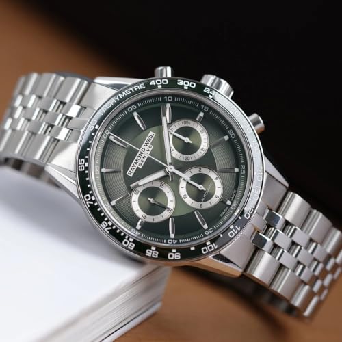 • The 43.5 mm stainless steel case encompasses a combination of brushed and polished surfaces and is attached to a 5-row stainless steel bracelet. This Chronograph watch has a function: a Swiss Made Movement , Stop Watch , Luminous Hands , Screw Down Crown and Tachymeter