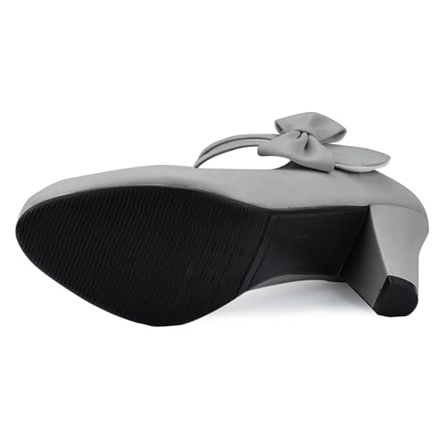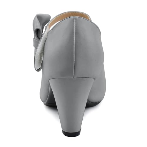 100FIXEO Chic Block High Heel Mary Jane Shoes Women Heels and Pumps Ladies Sweet Ankle Strap Dress Pumps Hook and Loop Bow Heels Closed Toe 5