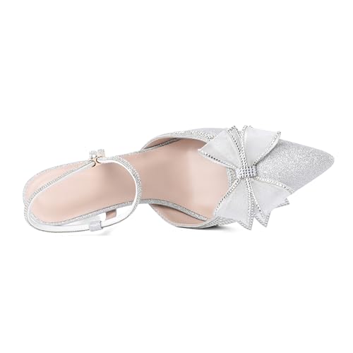 Eldof Women's Heels with Bow Sparkly Rhinestone Closed Pointed Toe Ankle Strap Stiletto Heel Pumps 3 Inches 4