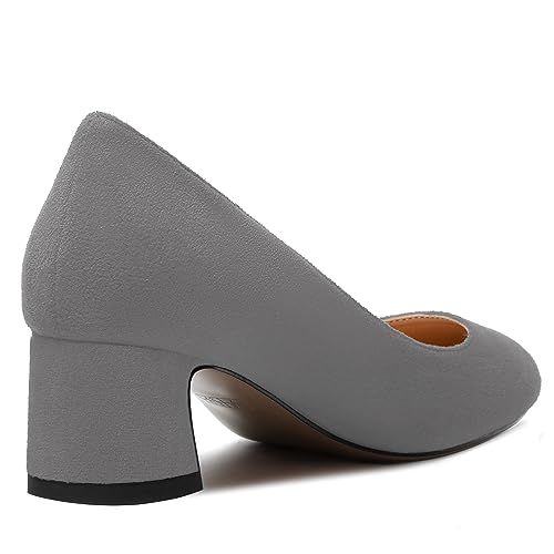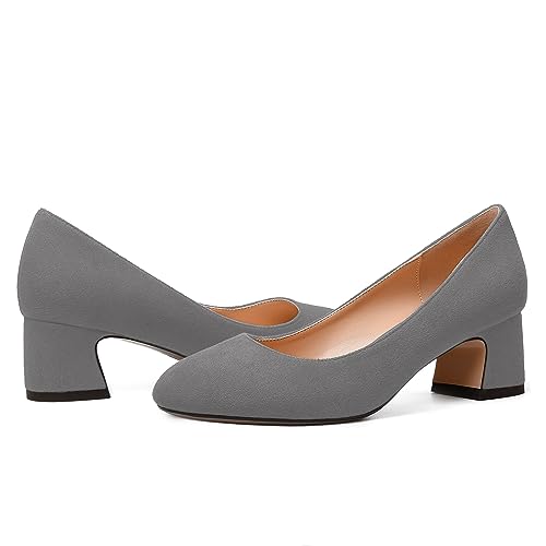 MODENCOCO Womens Suede Slip On Comfortable Formal Round Toe Office Chunky Low Heel Pumps Dress Shoes 2 Inch 5
